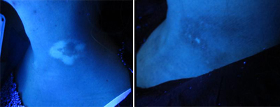 一、伍德灯检查:通过含氢化镍的滤片而获得320-400nm长波紫外线,检测色素异常性疾病, 在伍德灯下,黑素吸收全波段紫外线,若黑素减少与周围正常皮肤对比鲜明,界限清楚。以此来判断患者皮肤上的白斑是否是患白癜风。哪家医院有伍德灯>>>